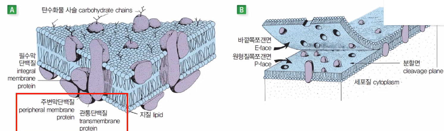 peripheral membrane protein은 대부분 세포질 안쪽에 있다. 대부분 관통단백질에서 시그널을 받으면 주변막단백질에서 그 신호를 받고 변형이 된다. 즉 세포 안쪽으로 직접적으로 시그널에 대한 작용을 전달한다.