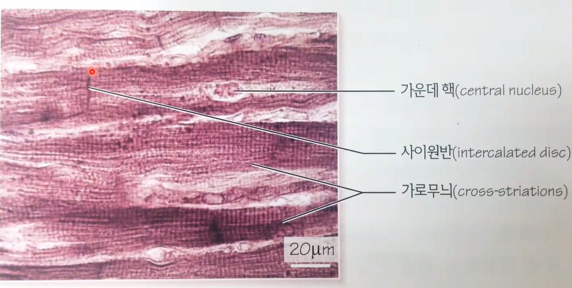 중간에 세포와 세포 사이에 이어진 부분이 사이원반 (intercalated disc)이다.