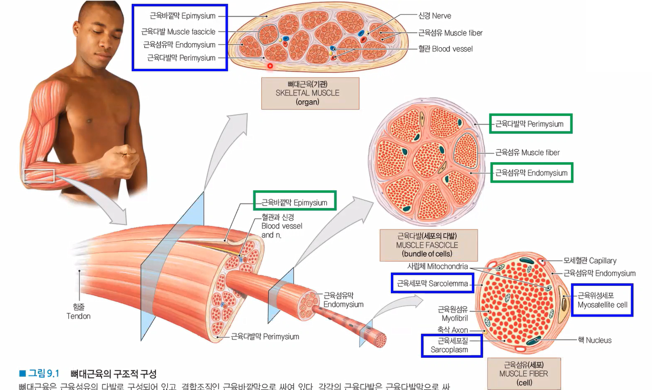 초록색 박스에 sacromere는 근육의 기능체적 단위이다.